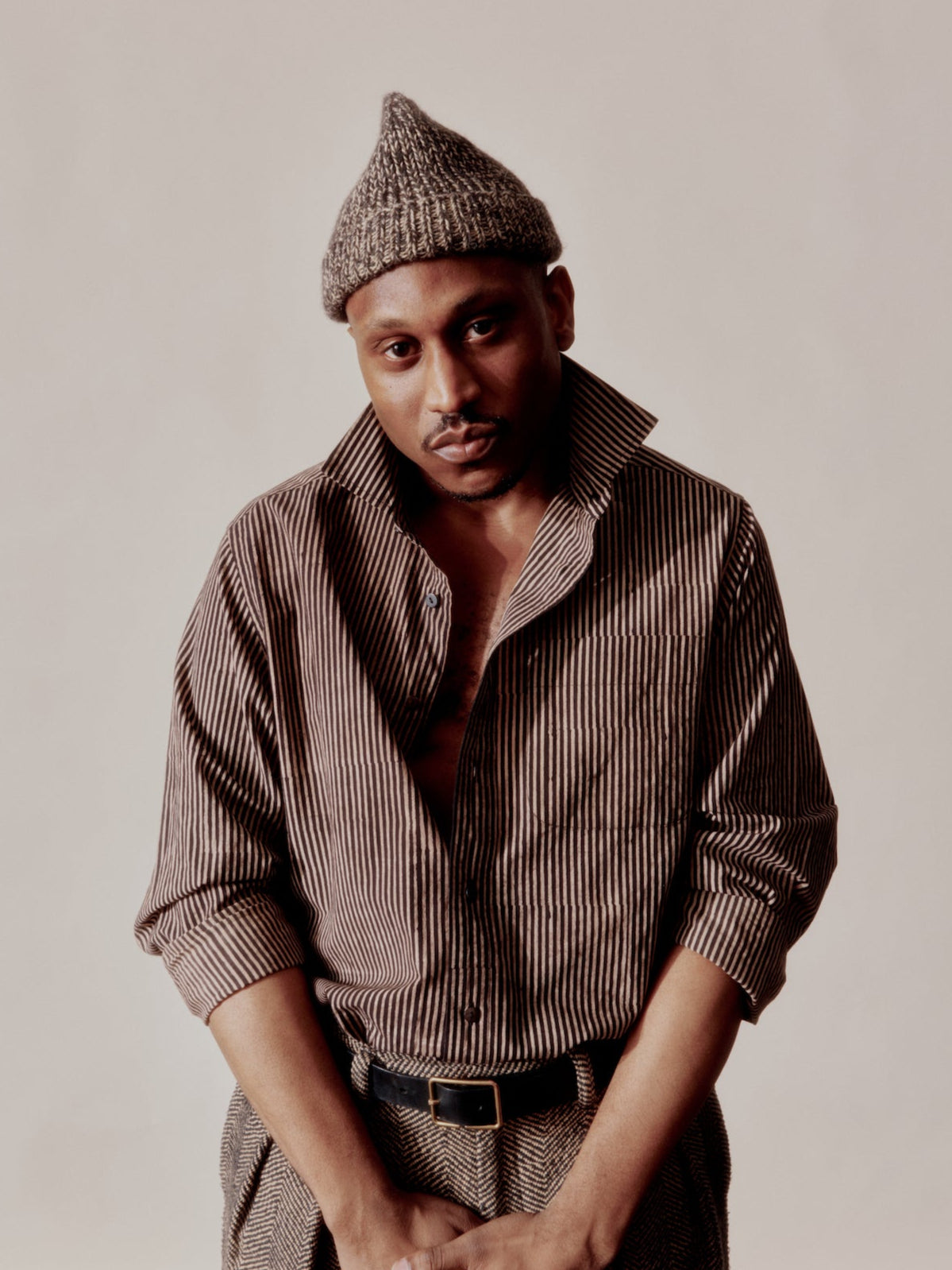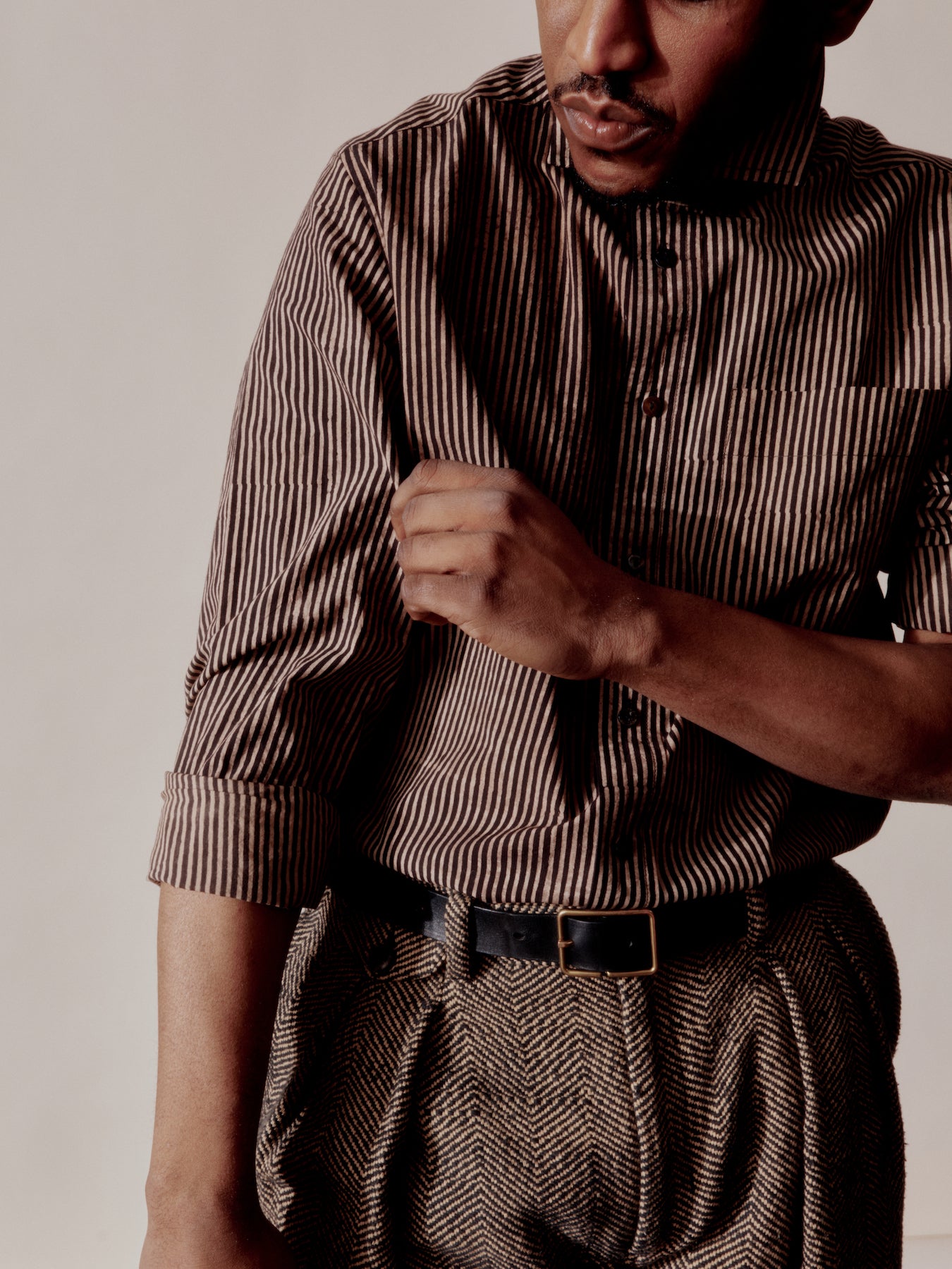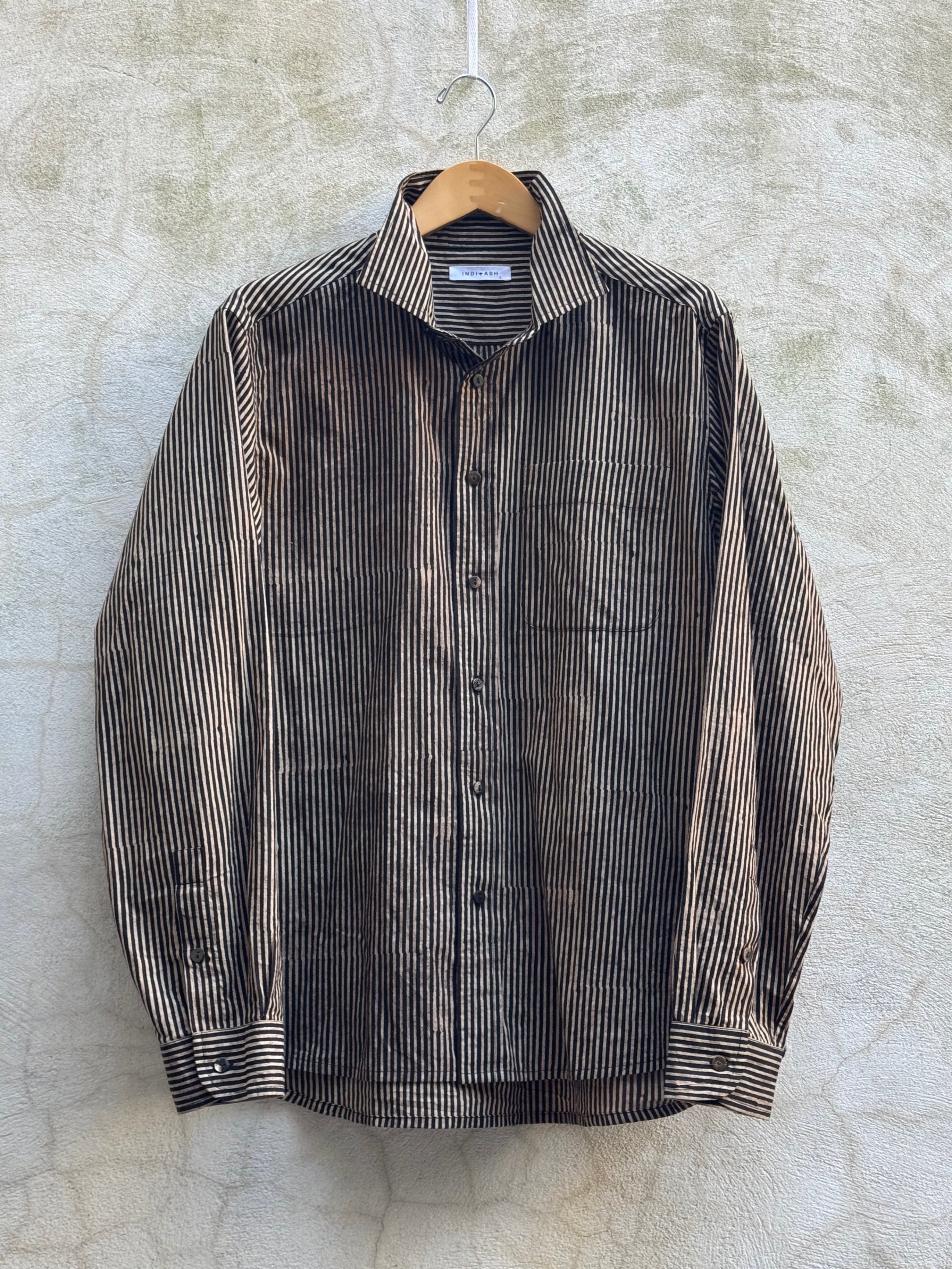 Our Core Matty Shirt in rain fed organic kala cotton. Here it is in our block print plant indigo Bengal Stripe. A beautifully textured medium weight spring and summer staple.