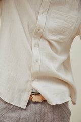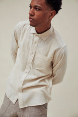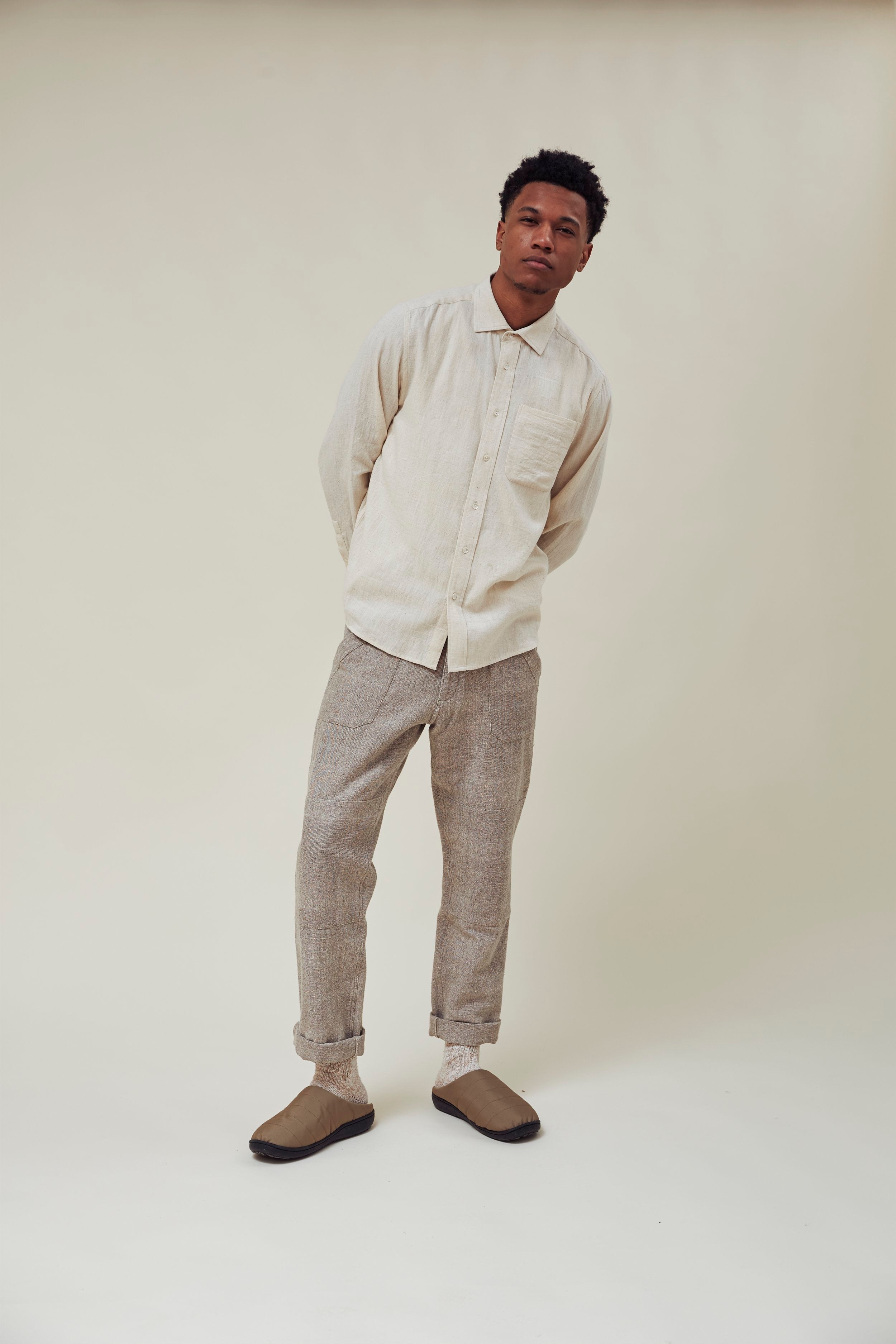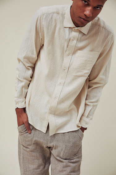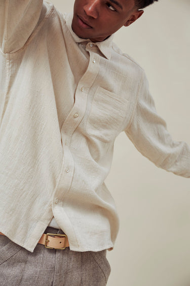 Our Core Matty Shirt in our classic handwoven kala cotton. Wild growing, naturally organic, the beauty lies in its simplicity. Peppered with cracked seeds and the occasional fly yarn - the fabric has been pre-washed and has a baked in gentle rumple. A wonderfully textured lightweight seasonless textile.