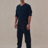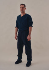 The Nico Pant is a new development. Built to combine a tailored look with an easy comfortable fit. Deep pleats at front with a long rise. Elastic waistband at back. Tuck pleats at Interior knee for some shaping at the leg with a full thigh and tapered leg.