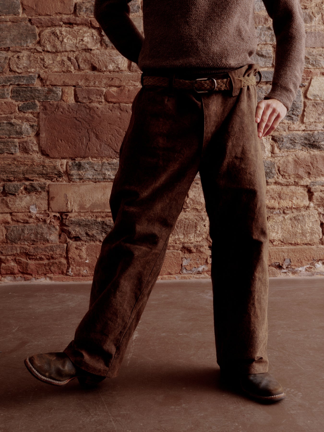 A rugged workwear addition to the collection. Organic cotton millwoven canvas with special new technique developments. Iron brown and forest green colorways are washed in a manually operated enzyme stone barrel creating a crackle effect which highlights some of the dyes undertones.