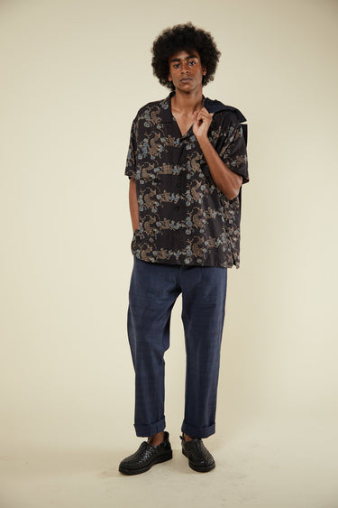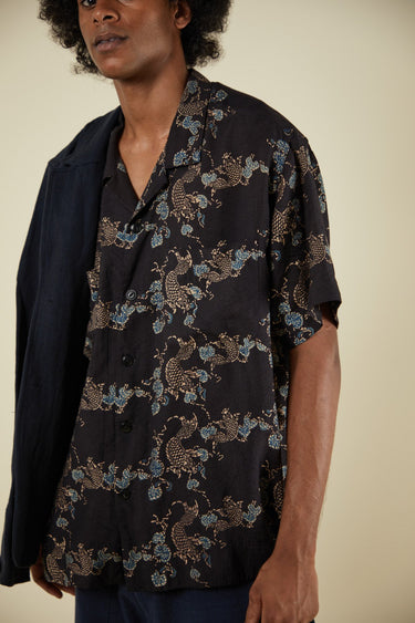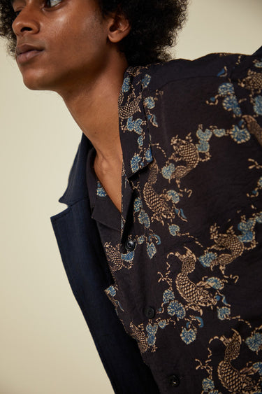 Printed on millwoven silk/cotton - a beautifully refined fabric meant to mirror traditional aloha shirts through natural fibers.