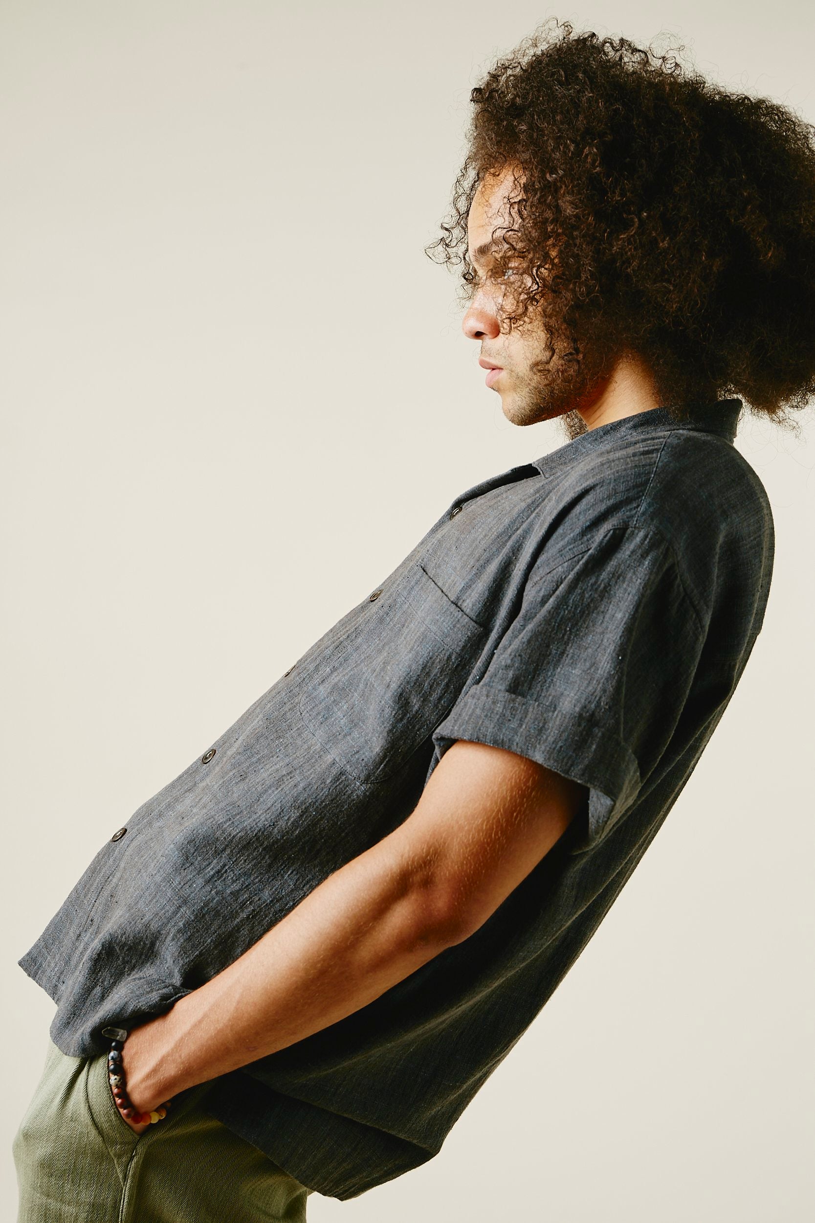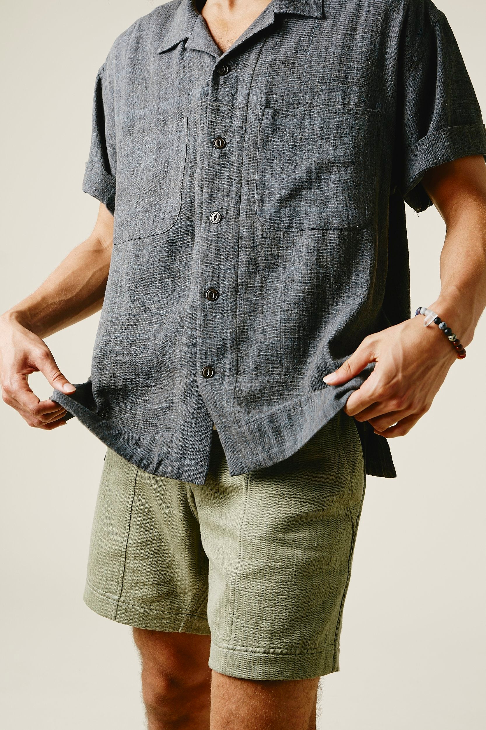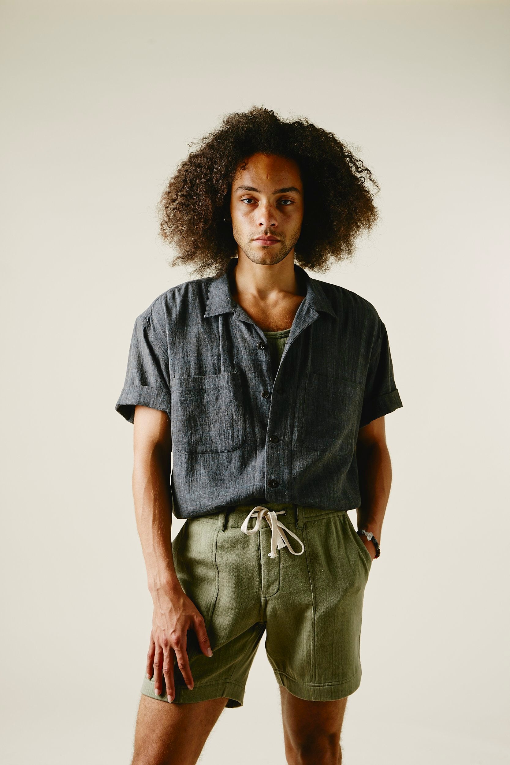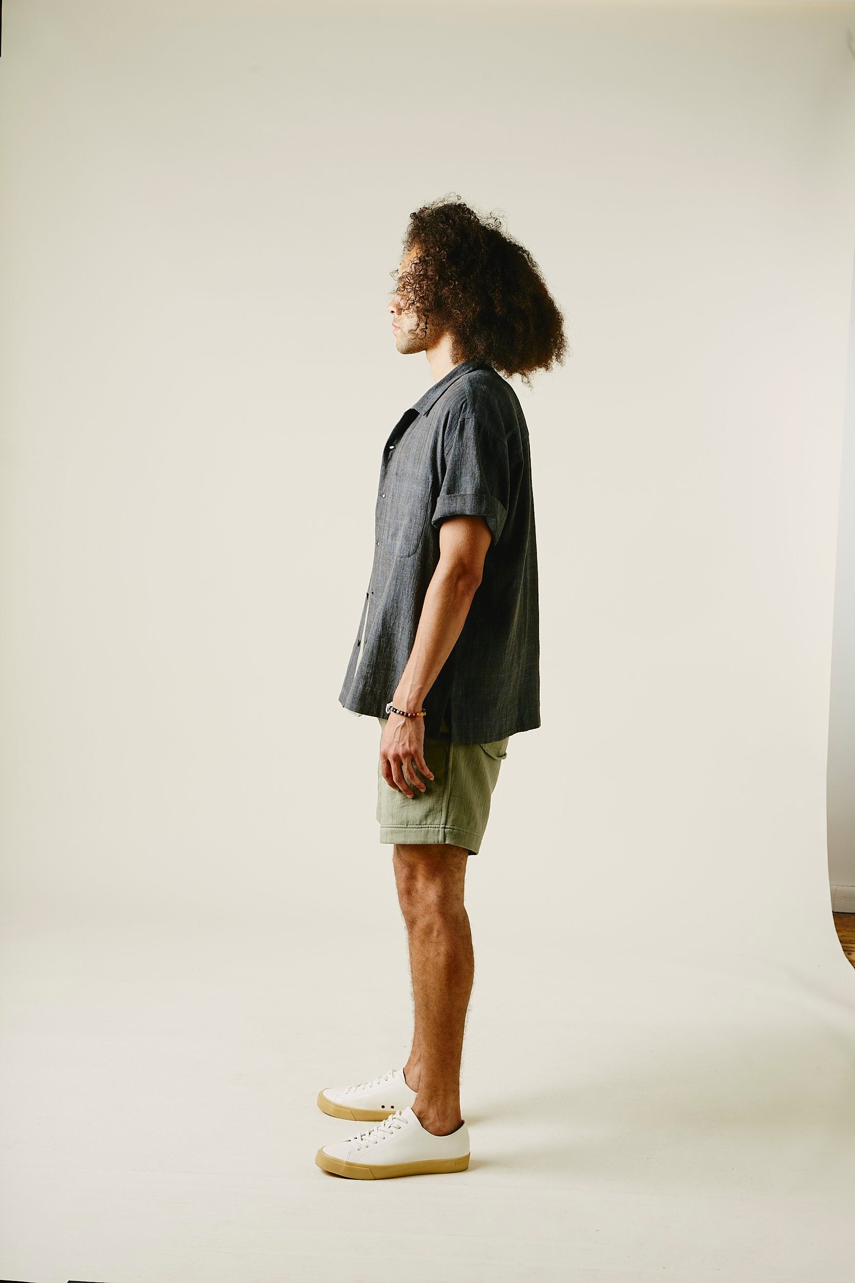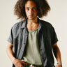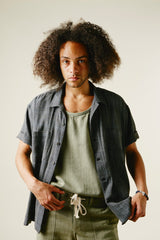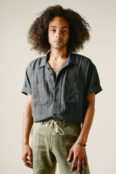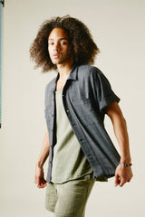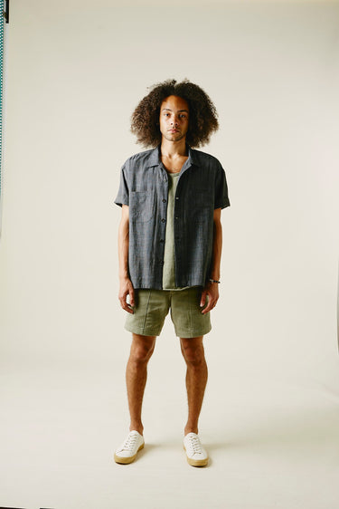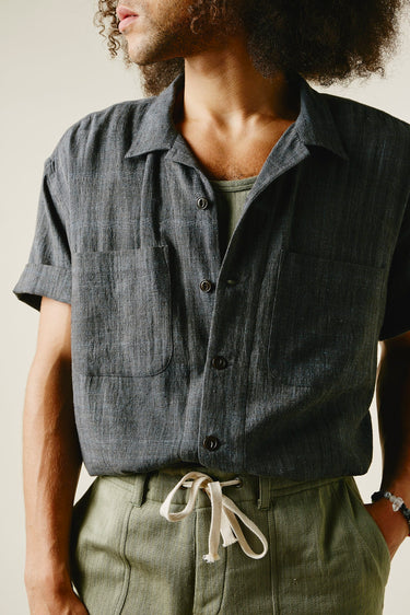 Our favorite Lake Camp shirt yet and the perfect lightweight shirt to get you through spring and summer. Issued here in our iron warp indigo weft kala cotton. Yarns dyed with a mix of henna, turmeric, and iron water. We took all of the best details from mid century USN chambray shirts. Wide french placket, one piece camp collar, double chest pockets, and oversized fit.Finished with Corozo nut fisheye buttons. This season we've made some adjustments to fit, making it true to size.