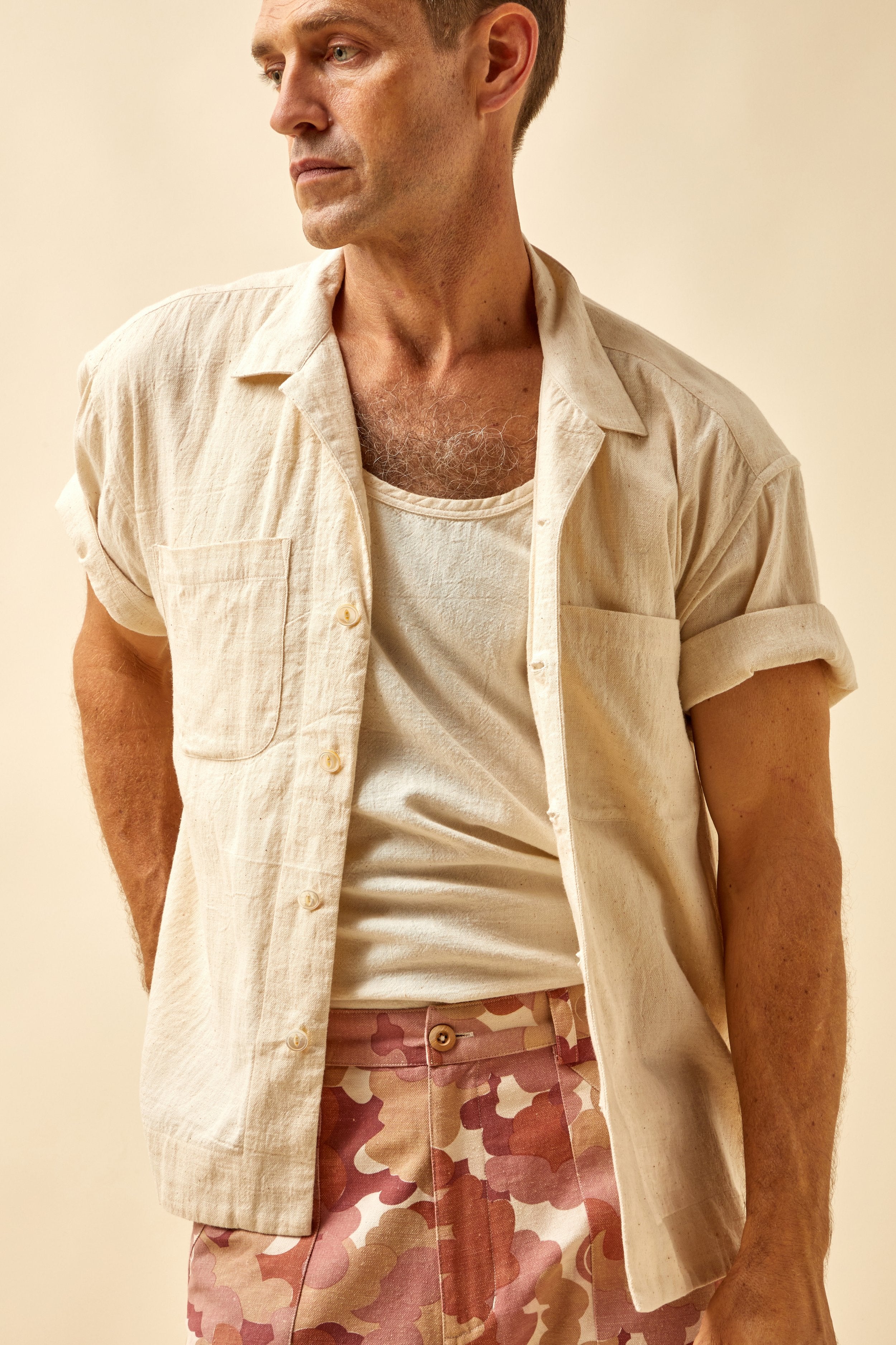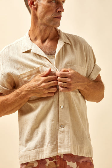 The Lake Camp Shirt in its purest form...natural, undyed, rain fed, organic Kala cotton.