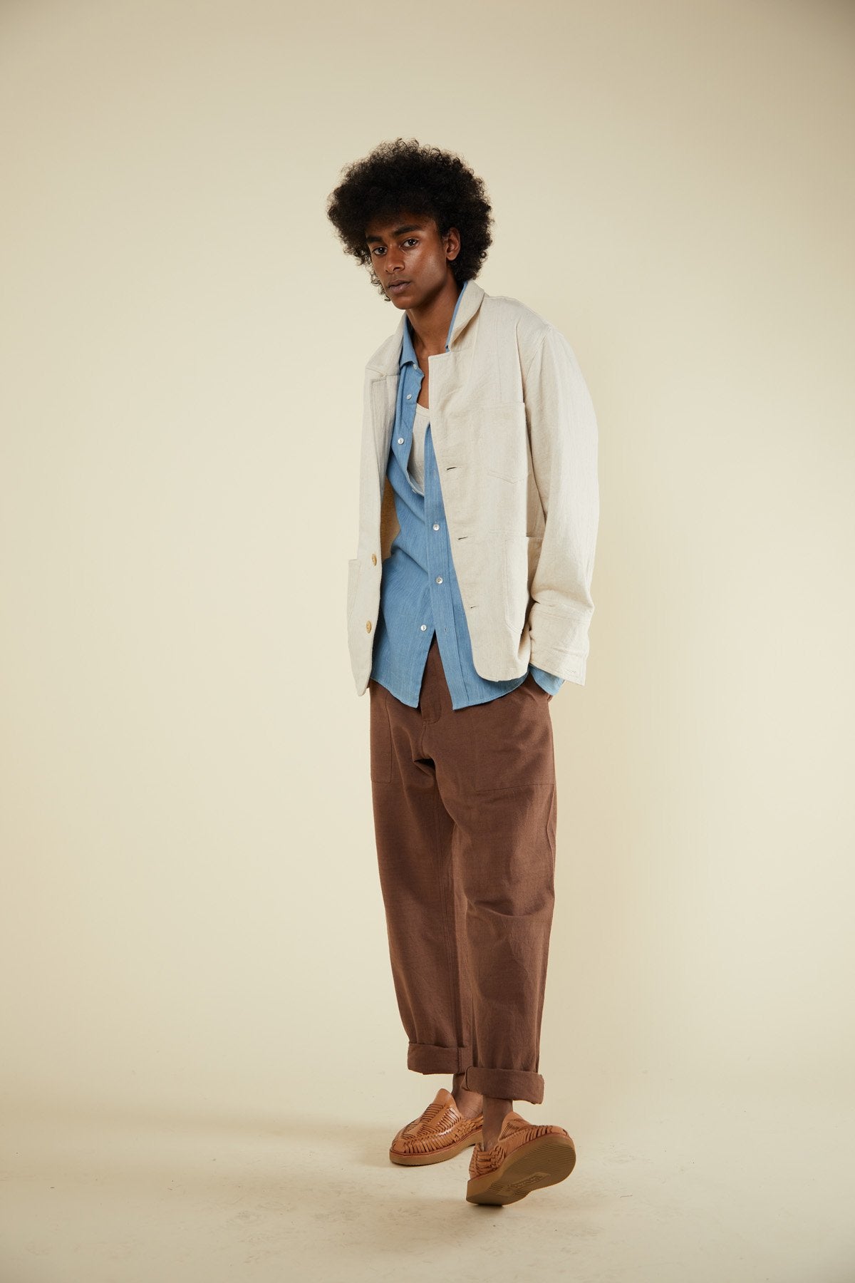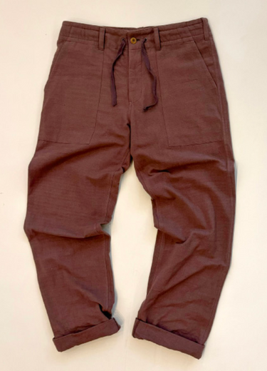 The Obelisk pant is inspired by vintage USMC military pants, and is the perfect relaxed silhouette for Spring and Summer. This issue is in our mauve powerloom canvas. A mix of plant based dyes.