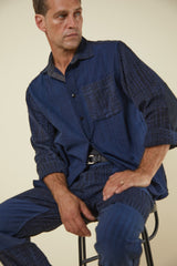 PATCHWORK MATTY OVERSHIRT iron/indigo