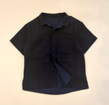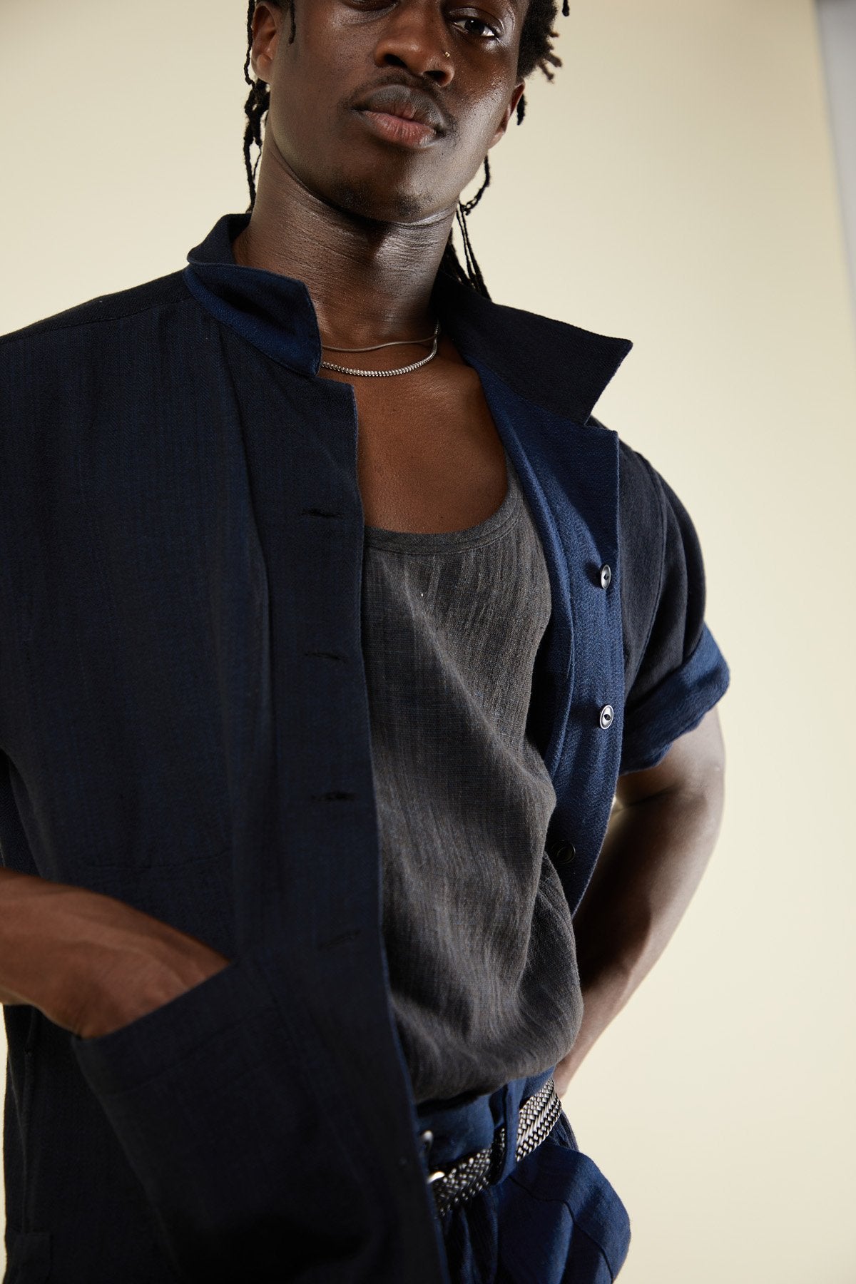 Raw Corozo nut buttons, one piece collar, dual chest pockets, single tailor construction.