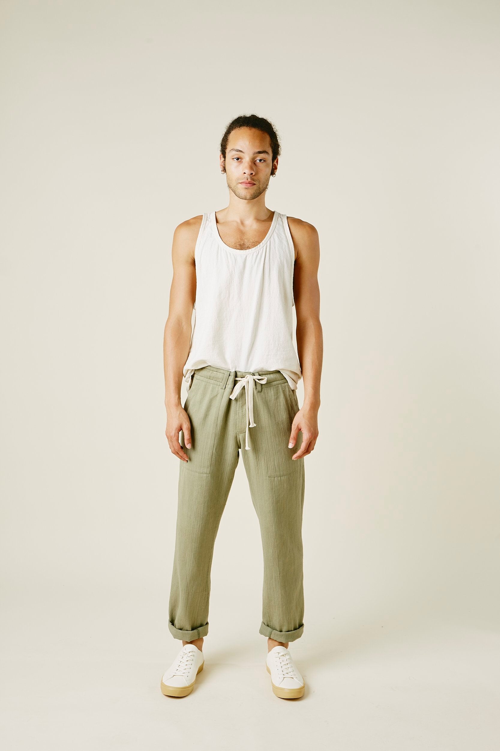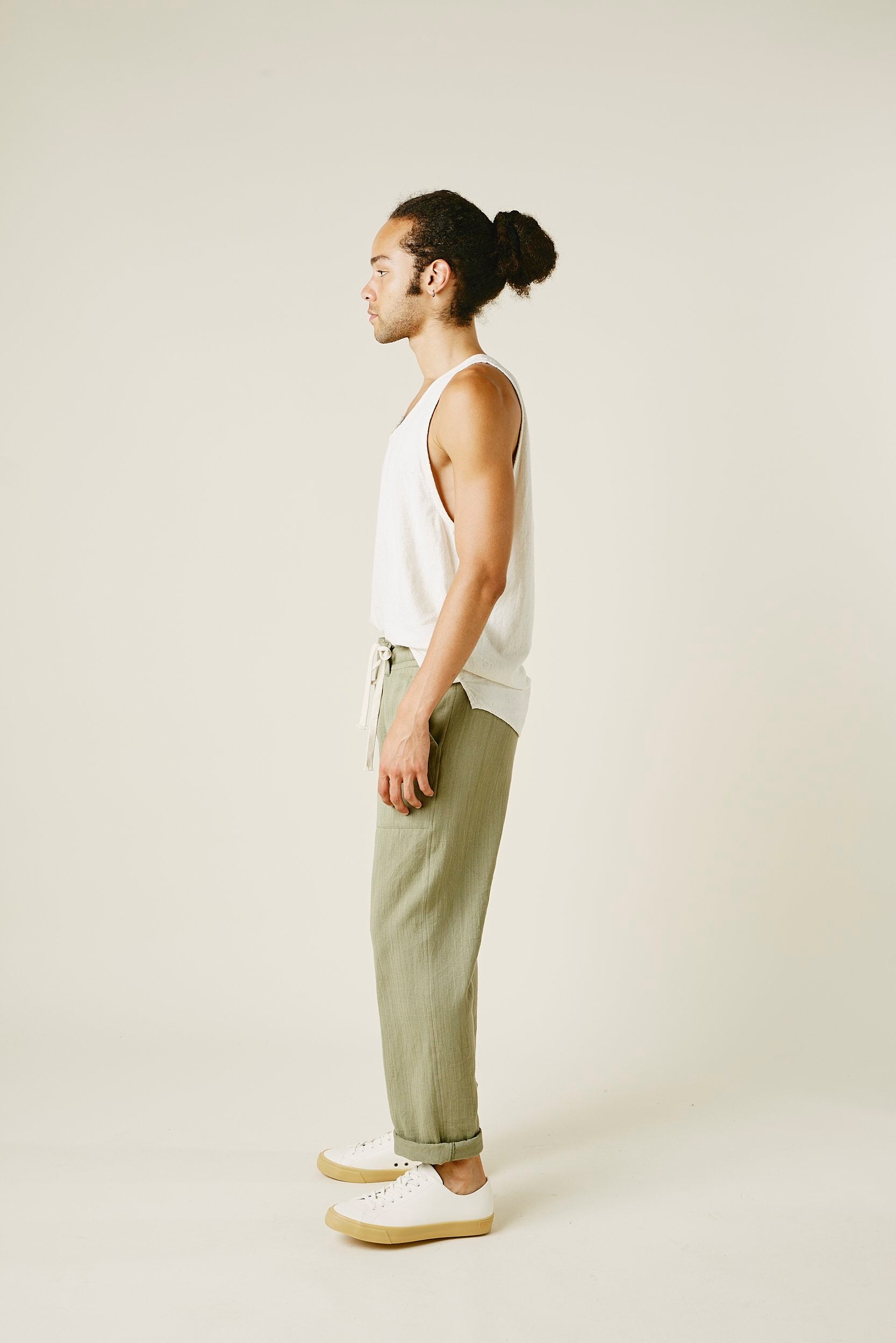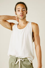 Our take on a traditional tank. Cut from our handwoven kala cotton, this is an easy, cool, and comfortable alternative to a basic tank. Slight shirttail and a relaxed fit with a low armhole. Wears like linen, but with way less wrinkling.