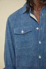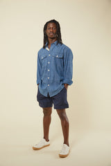 The Smith Workshirt is a new style for the season. A straight fit with classic USN military chambray shirting details. Point collar. Chest Pockets with point button flaps. Full Placket