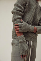A new favorite - hand knit from all our best sweater yarns. Fingerless, one size fits all, with a racking stitch at the wrist for ease of movement. Pictured here in our Chillca dyed alpaca and Peruvian Pima Cotton combo. Chilca is a shrub or weed local to Arequipa Peru where these yarns are dyed.