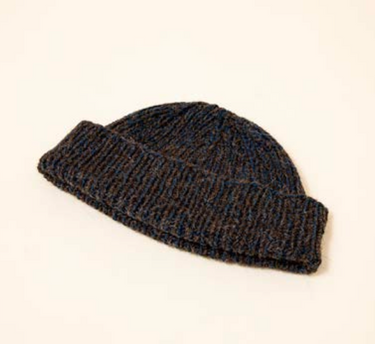 A new favorite - hand knit from all our best sweater yarns. Pictured here in our undyed black alpaca and plant based indigo Peruvian Pima Cotton combo.