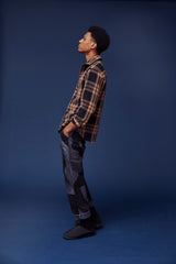 A beautiful, rugged version of our Ames, the yarns here have been hand-dyed black with iron and crossed with a faded brick color from madder root to create this sick version of our big plaid.