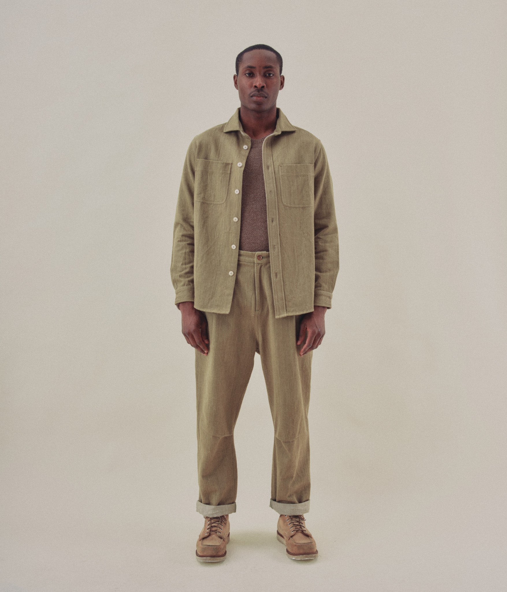 Our Denim - updated this season from vintage powerloom to handloom. The handloom nature allows for a drapier, slightly looser weave. The result is a garment that molds itself to the body of the wearer, with superb drape and handfeel.