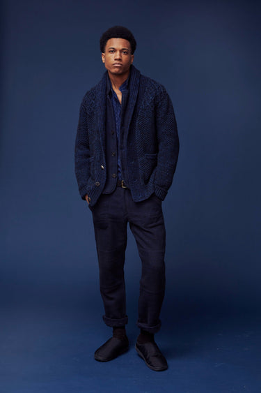 Its all been building to this. The ideal version of our Andes Cardigan. Rare jet black undyed alpaca combined with deep indigo dyed Peruvian Pima Cotton. The result of combining the darkest indigo with black alpaca is the deepest blue color we've made to date and a beautiful texture that we're very proud of.
