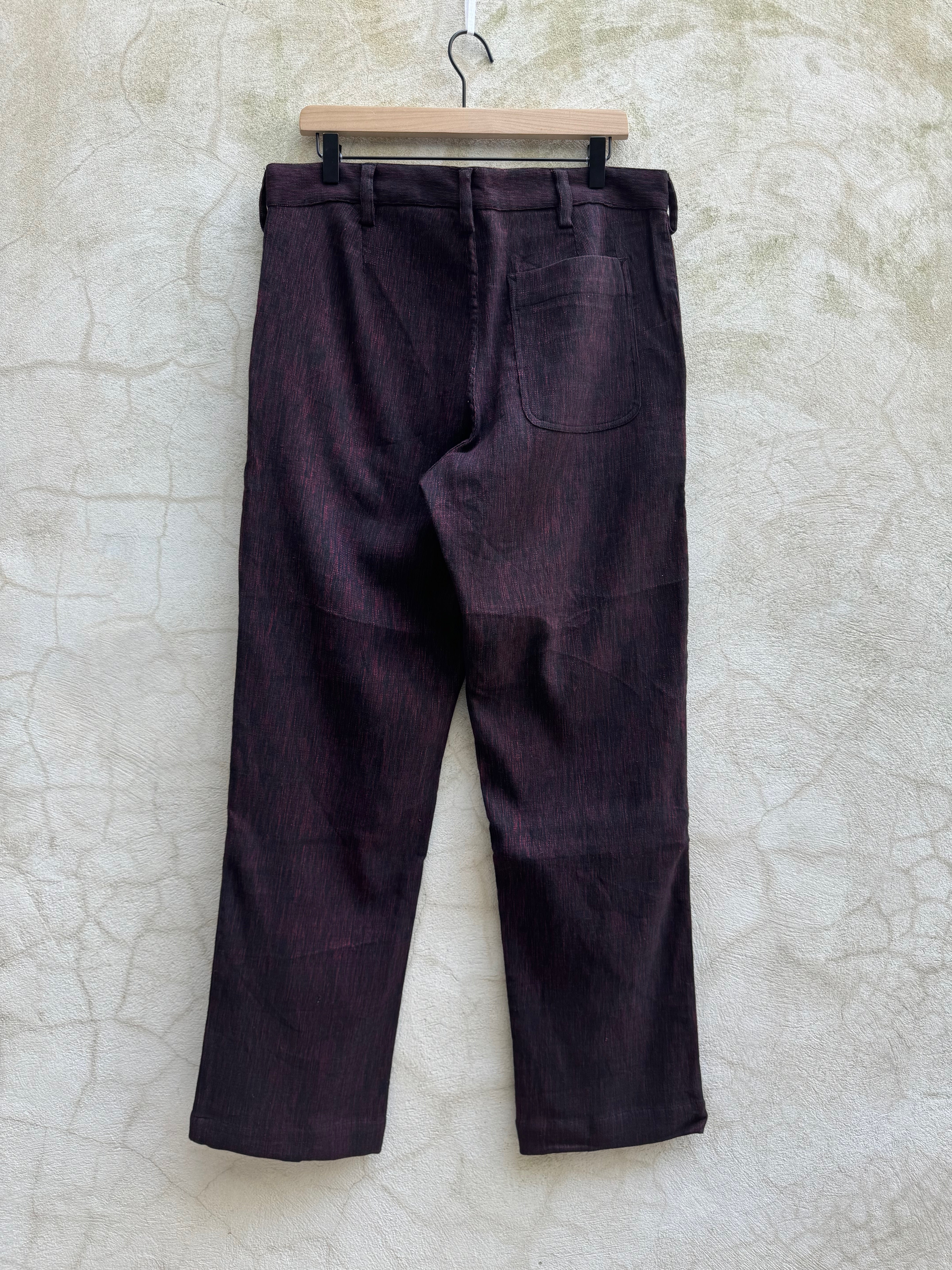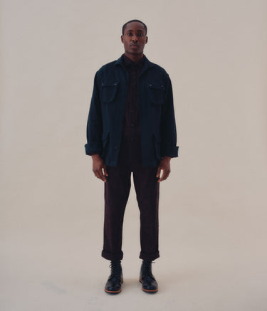 Our Isaac Pant, classic fitting straight leg, with reinforcements at the knee, and patch pockets. The 2nd part of our casual, unconstructed suit inspired by french vintage workwear.