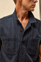 A medium weight version of our Lake Camp. Heavy enough to wear as an overshirt, light enough to wear on its own. The perfect vehicle for our handwoven military herringbone.