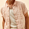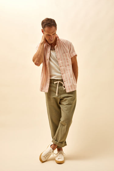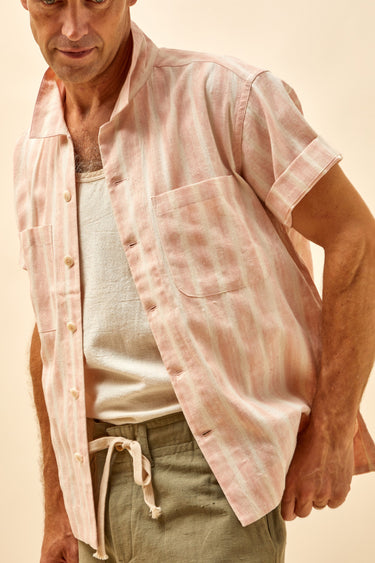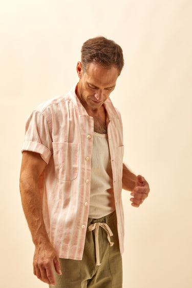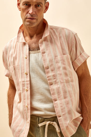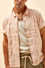 REVERSIBLE LAKE CAMP OVERSHIRT madder pink block print stripe