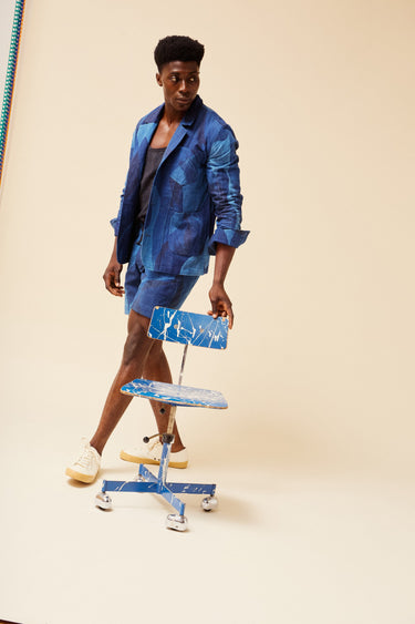 style / STUDY JACKET indigo paintbrush camo organic cotton canvas