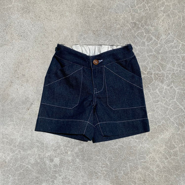 We loved our Isaac Pant so much that we brought them back as shorts! Our denim is made from organic yarns that are naturally dyed and then powerloomed to create a beautiful weave, texture, and handfeel. Built to last with contrast white stitching at the pockets and seams. Natural wood button, natural khadi interior waistband for comfort with elastic so that your kiddo can wear them for at least two years. Wash cold hang dry, the more you wear them the better they get
