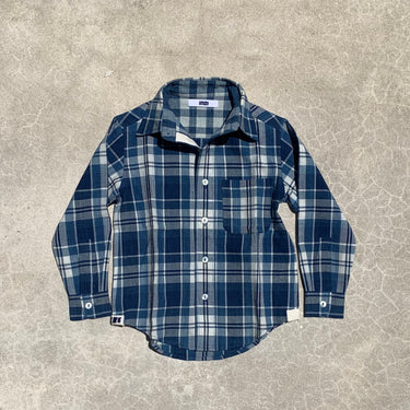 KIDS LS MATTY SHIRT mixed indigo plaids handwoven cotton