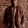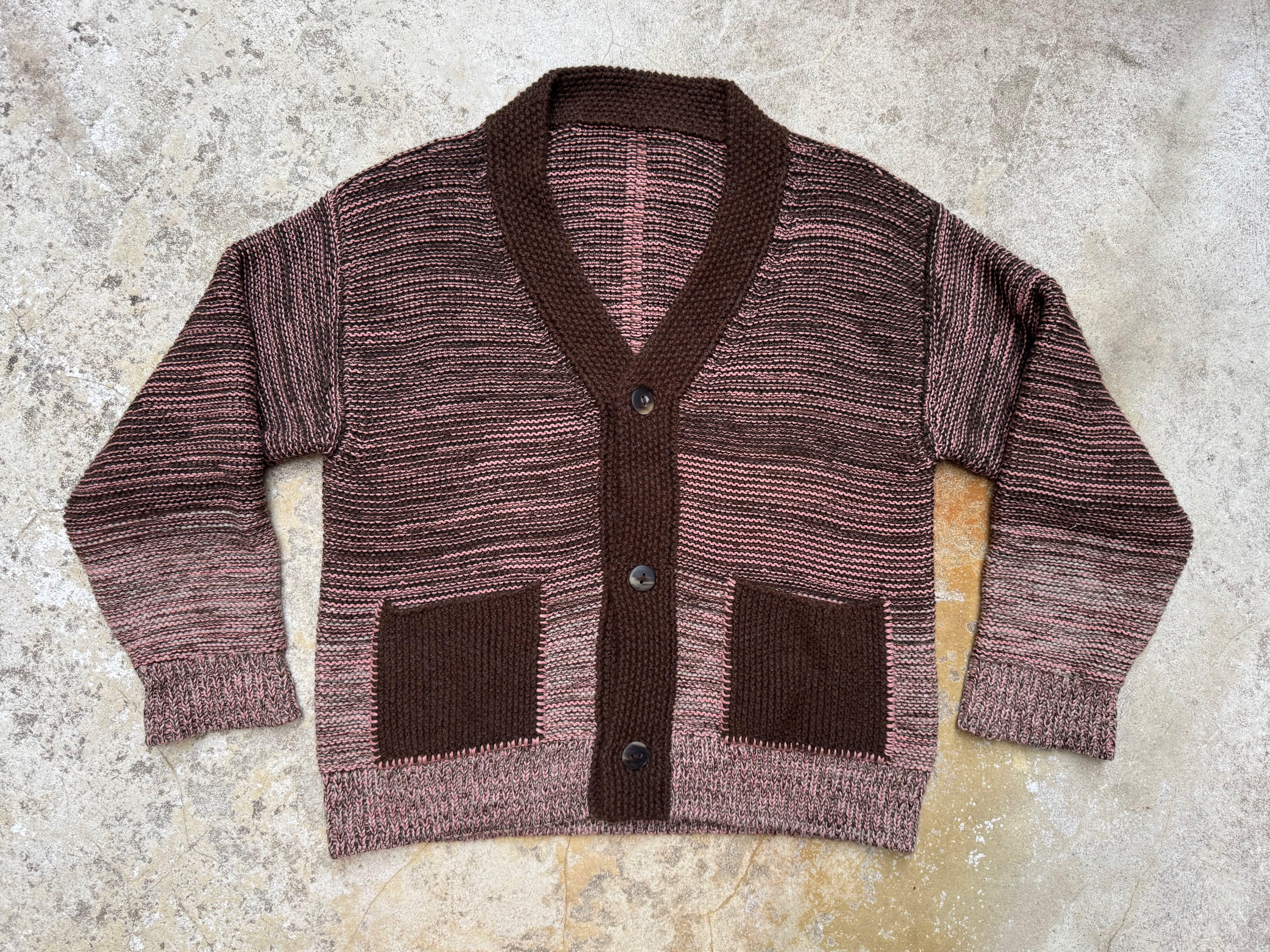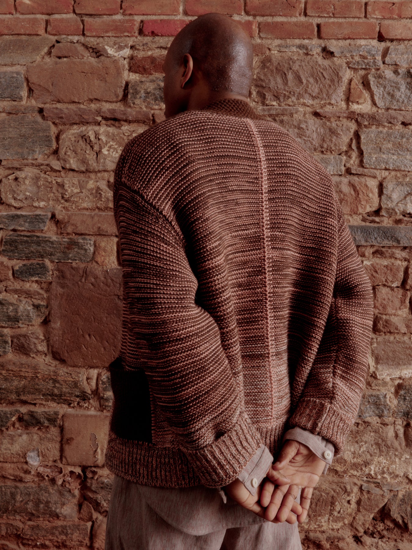 The Ren Cardigan takes heavy inspiration from antique japanese sakiori hanten: farmers vests made from fabric rewoven from the cut strips of worn, no longer usable textiles.
