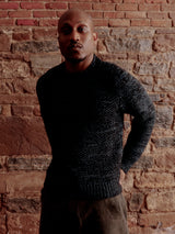 The Spencer is knit on a hand-flat manual machine. Inspired by vintage Swiss military thermals, a jersey tuck stitch at the body mimics the texture of a waffle, with a rib construction that follows the sleeve over the shoulder.