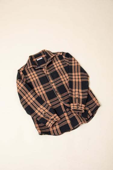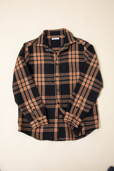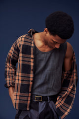 A beautiful, rugged version of our Ames, the yarns here have been hand-dyed black with iron and crossed with a faded brick color from madder root to create this sick version of our big plaid.
