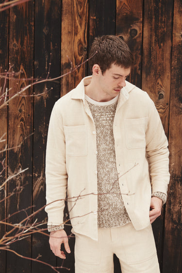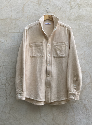 Undyed yarns woven in a classic 2X1, dense enough to last forever, but soft and drapey enough to wear everyday. Classic workshirt details inspired by old Big Mac workshirts, in a slightly oversized fit so it can be layered and worn like a jacket. Single Tailor Construction. Mother of Pearl fisheye buttons provide a natural twist on a classic detail. Kala Cotton gussets at the sideseam and interior placket. Machine wash cold and hang dry.