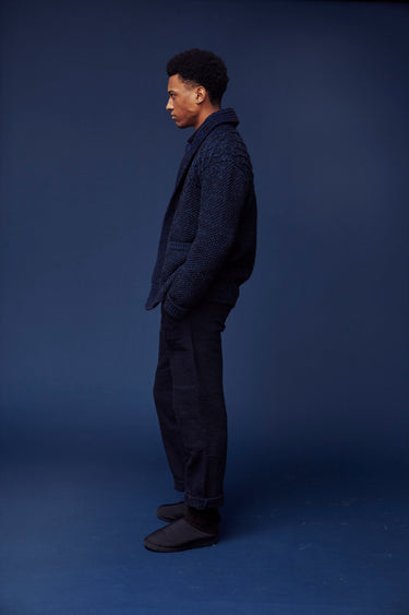 Its all been building to this. The ideal version of our Andes Cardigan. Rare jet black undyed alpaca combined with deep indigo dyed Peruvian Pima Cotton. The result of combining the darkest indigo with black alpaca is the deepest blue color we've made to date and a beautiful texture that we're very proud of.