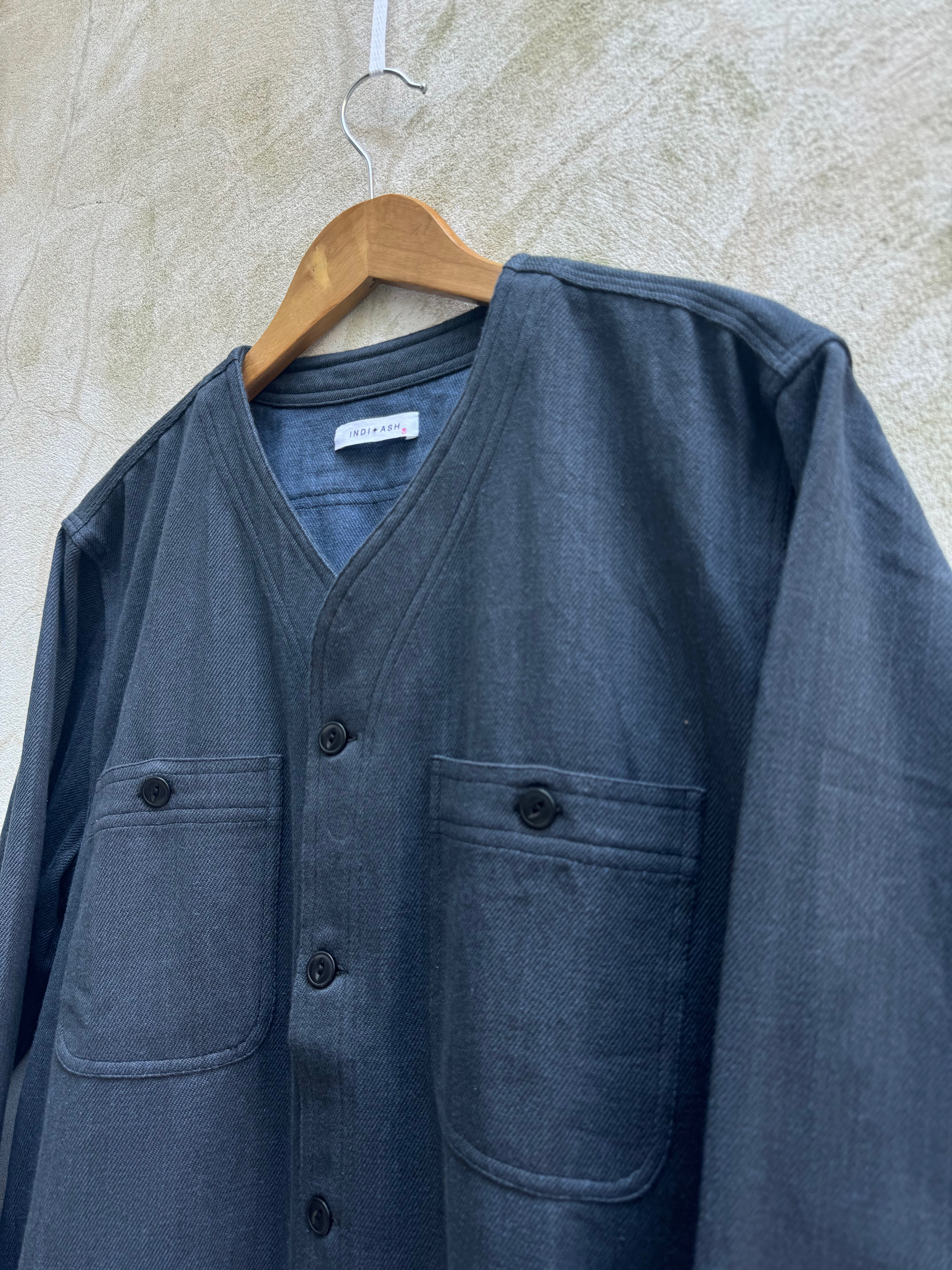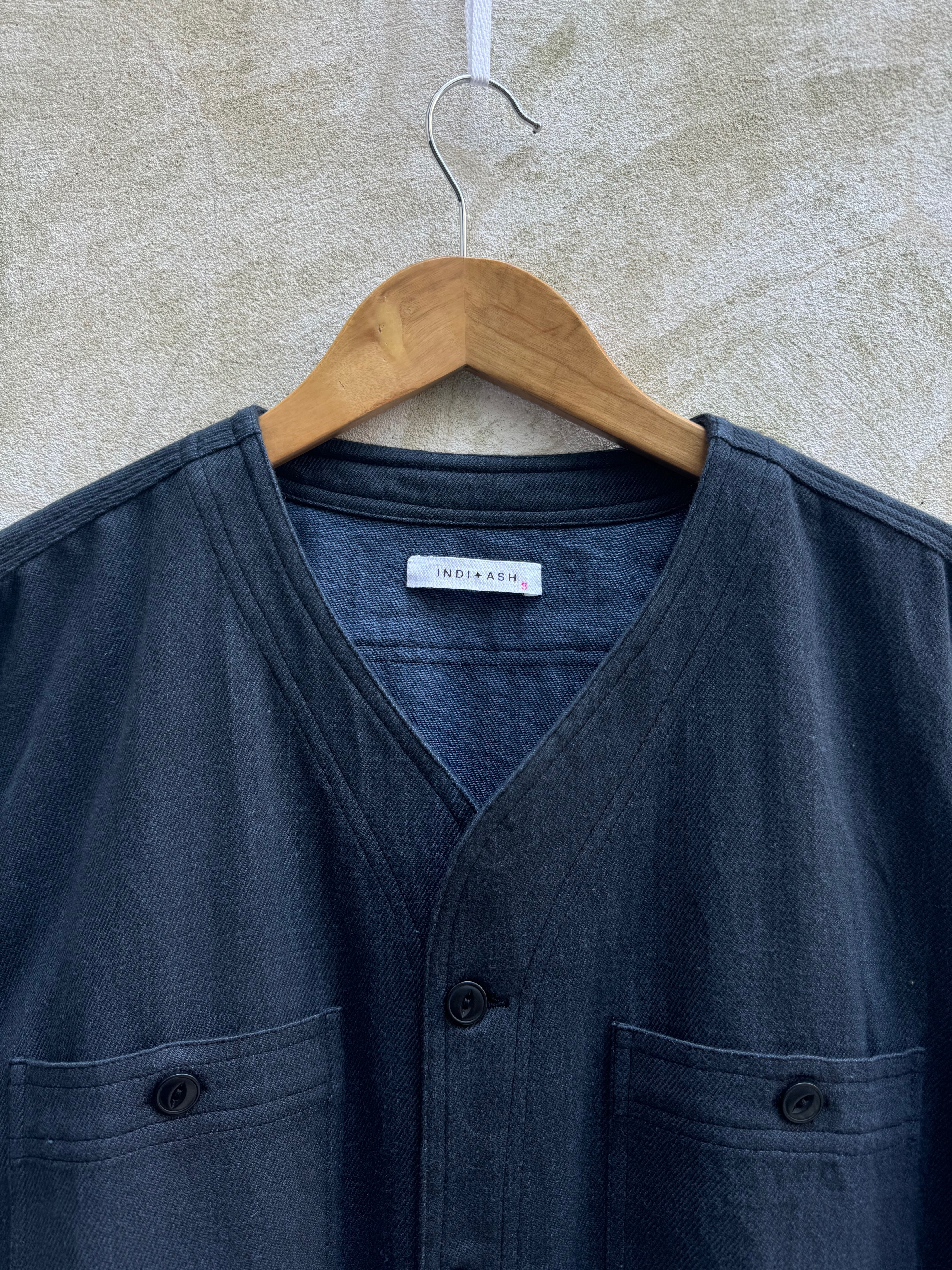 Warp yarns dyed with iron, weft yarns dyed with plant based indigo