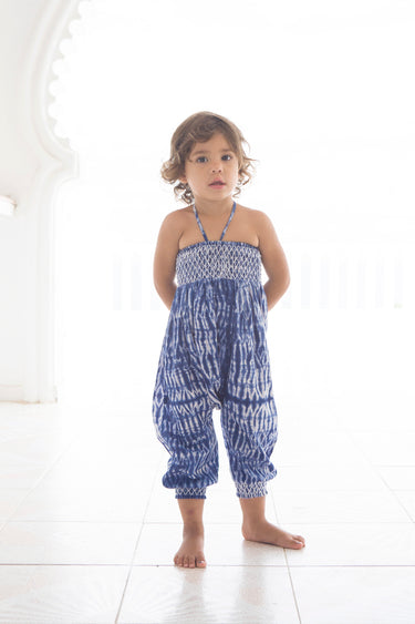 Inspired by a traditional romper shape found across the globe, the Coco Romper is a great vehicle for any print. We're introducing it this season in our Blue Stitch Shibori and our Little Flower Woodblock Print. Elastic Smocking at the upper and cuffs are embellished with a functional and decorative embroidery stitch and maximize wearability. Ties have been added at the neck for added security.