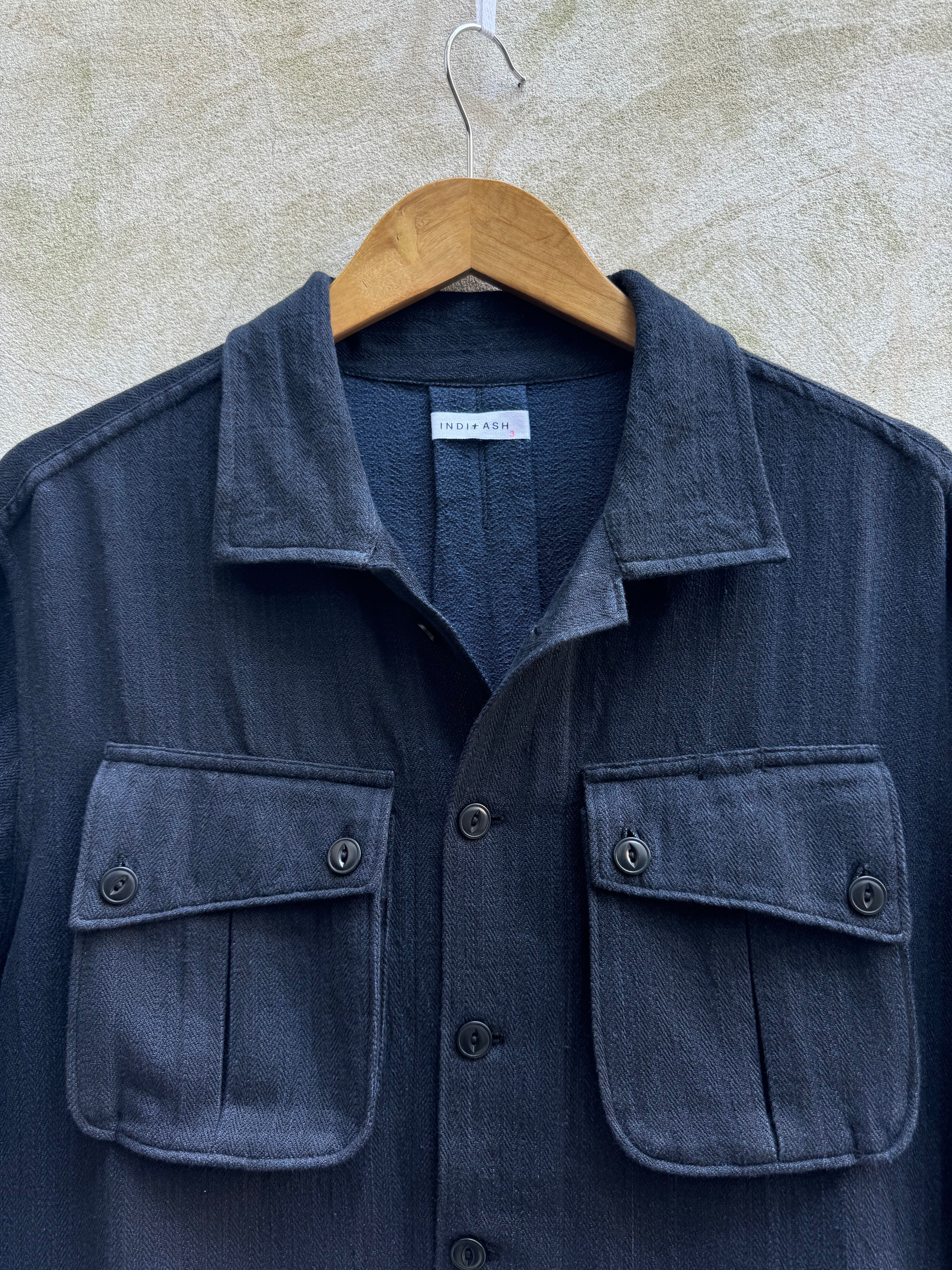 Warp yarns dyed with Iron and weft yarns dyed with indigo