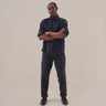 Our Isaac Pant, classic fitting straight leg, with reinforcements at the knee, and patch pockets. The 2nd part of our casual, unconstructed suit inspired by french vintage workwear.