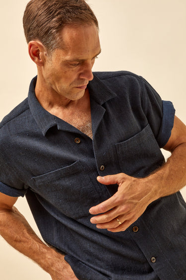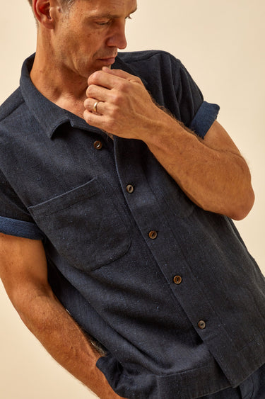 A medium weight version of our Lake Camp. Heavy enough to wear as an overshirt, light enough to wear on its own. The perfect vehicle for our handwoven military herringbone.