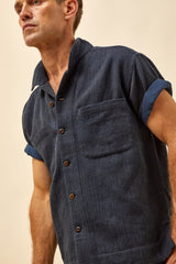 Black Corozo nut buttons, one piece collar, dual chest pockets, single tailor construction.