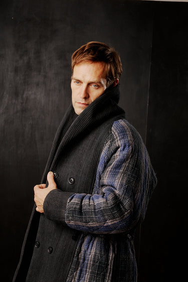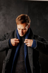style / REVERSIBLE SHAWL OVERCOAT indigo/iron dark shadow plaid denim
