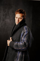 REVERSIBLE SHAWL OVERCOAT indigo/iron dark shadow plaid denim